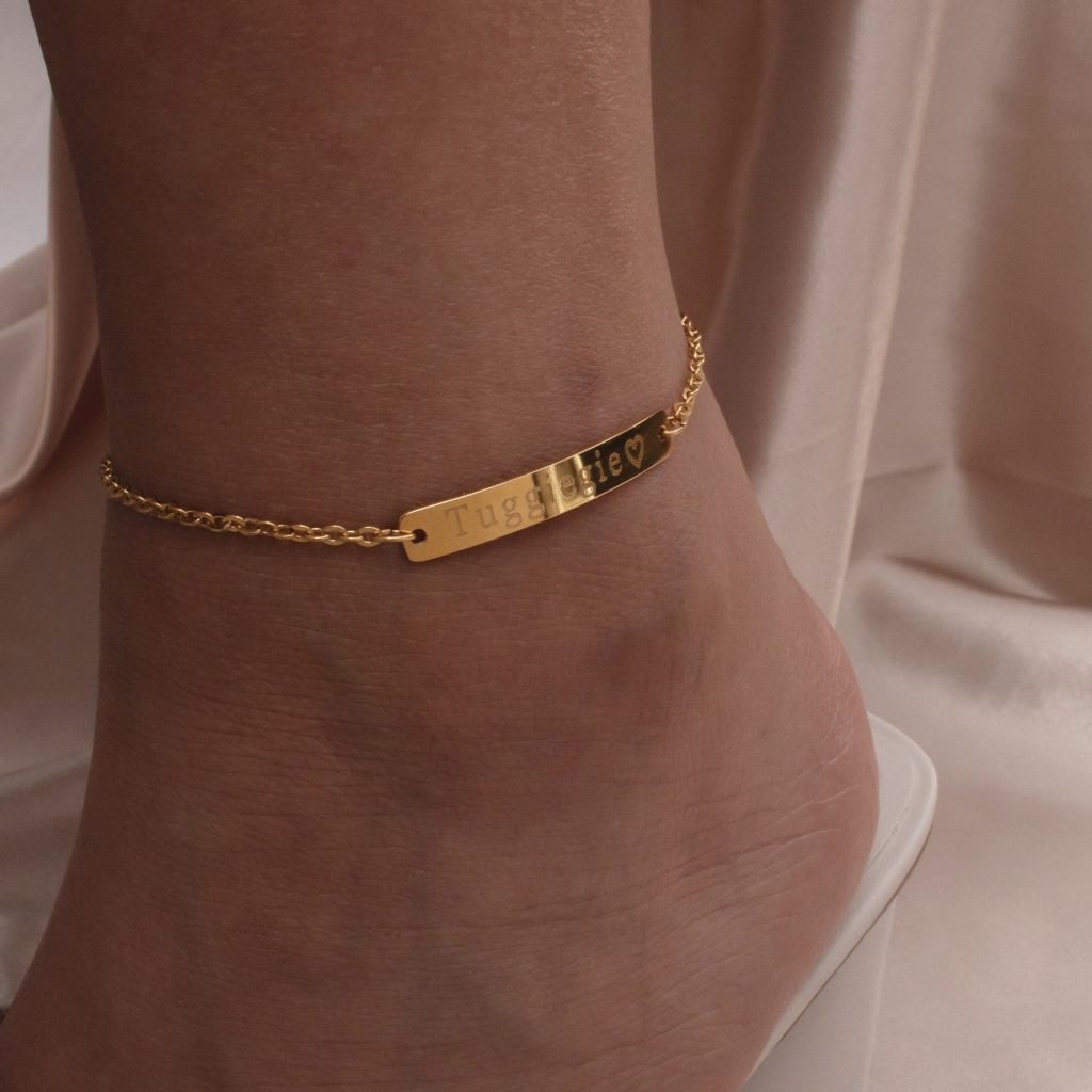 - High-Quality Craftsmanship: Crafted with attention to detail, our Custom Name Bar Anklet is made from premium materials to ensure durability and longevity. It’s designed to withstand everyday wear, maintaining its beauty and shine over time.