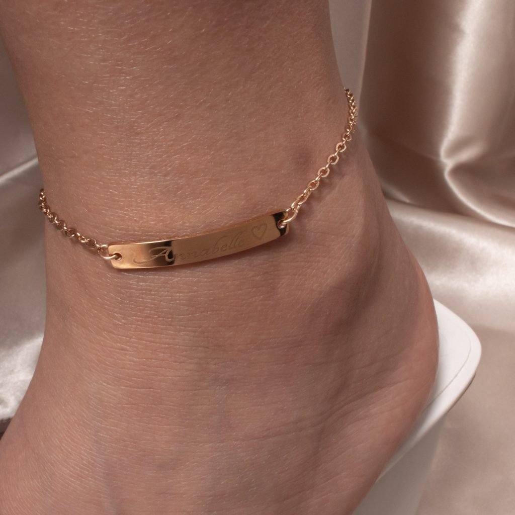 - Personalized Elegance: The Custom Name Bar Anklet allows you to showcase your individuality with a customized name or meaningful word engraved on a sleek bar pendant. It’s a stylish and elegant accessory that adds a personalized touch to your look.
