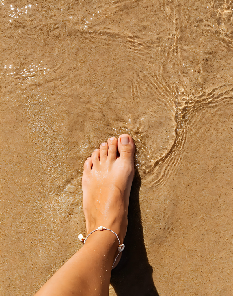 Most accessories don’t survive a beach day. Leather bags show salt marks, fabric hats go limp, and standard jewelry tarnishes the moment it meets seawater. Foot jewelry is different — when it’s made from the right materials, a beach environment is exactly where it thrives.